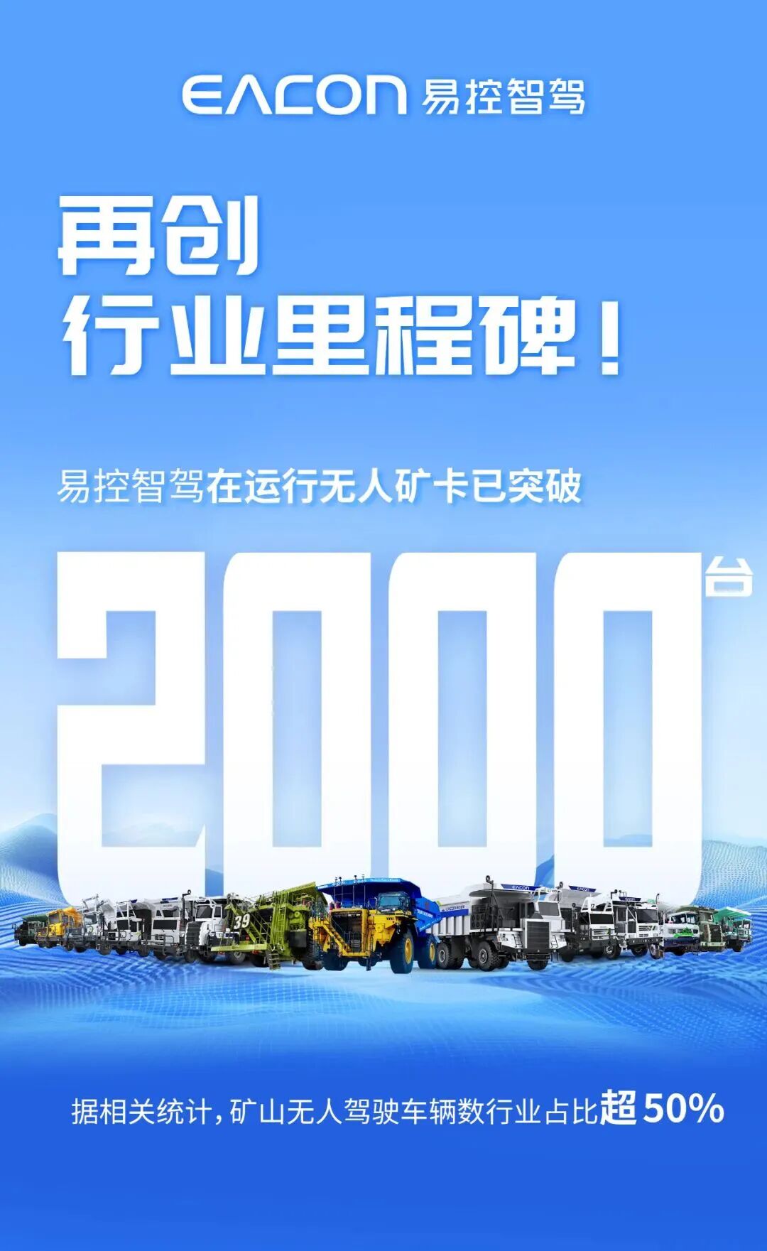 9月19日,易控智駕宣布公司在運(yùn)行無人礦卡已突破2000臺(tái)!據(jù)相關(guān)統(tǒng)計(jì),礦山無人駕駛車輛數(shù)行業(yè)占比超50%。