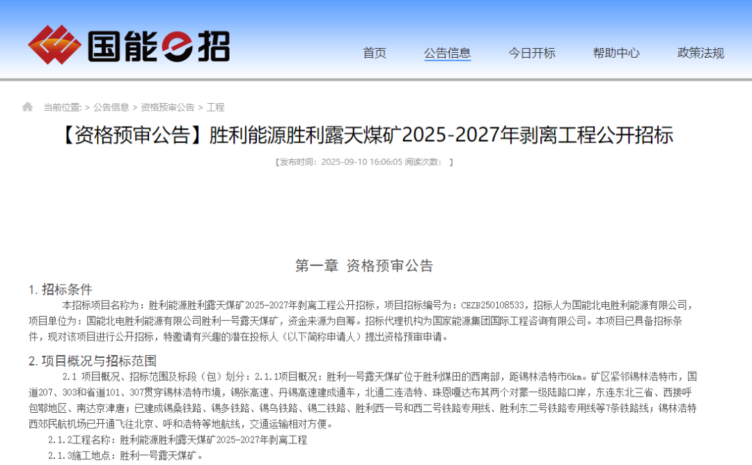 9月22日,勝利能源勝利露天煤礦啟動(dòng)2025-2027年剝離工程資格預(yù)審,其中提到,三年累計(jì)投放不少于198臺(tái)無(wú)人礦卡。