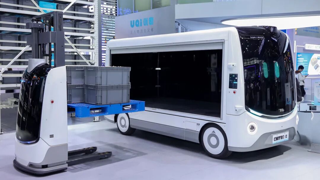10月28日,新一代室外無人物流車Chitu赤兔α線下首秀CeMAT ASIA 2025。