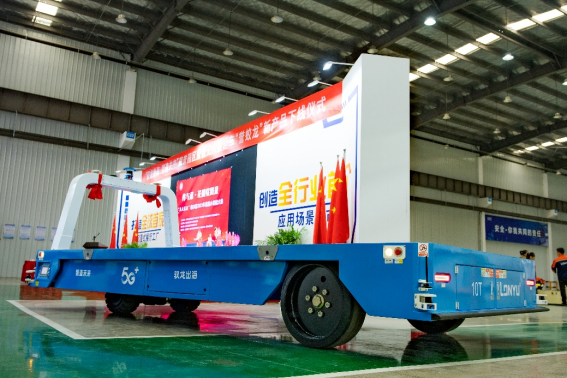 11月8日,朗譽機器人推出“譽蛟龍”新一代園區(qū)重載無人搬運車。