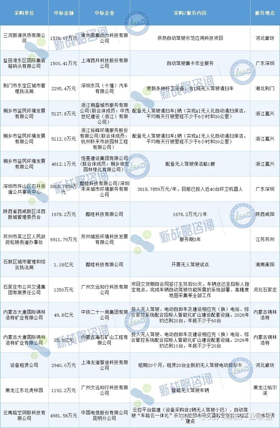 2025年11月無人駕駛領(lǐng)域千萬級及以上中標項目(未完善之處請指正)