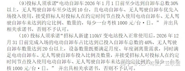 除大體量外,該項目的服務(wù)內(nèi)容也是行業(yè)重要關(guān)注點之一,里面提出了無人礦車規(guī)模應(yīng)用目標,兩標段累計在2026年底投入不少于80臺無人礦車。