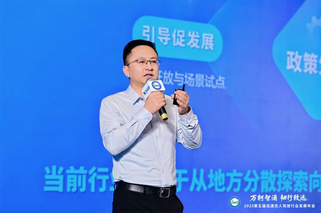 會(huì)上,首先由低速無人駕駛產(chǎn)業(yè)聯(lián)盟秘書長、新戰(zhàn)略低速無人駕駛產(chǎn)業(yè)研究所所長李進(jìn)科《2025低速無人駕駛行業(yè)發(fā)展年度報(bào)告及下一個(gè)五年趨勢洞察》為主題,帶領(lǐng)大家回顧過去五年時(shí)間低速無人駕駛行業(yè)發(fā)展,并從規(guī)?;逃玫年P(guān)鍵突破、生態(tài)協(xié)同的新范式以及未來面臨的挑戰(zhàn)與機(jī)遇三大維度,為我們指明了未來五年的發(fā)展方向與關(guān)鍵節(jié)點(diǎn)。