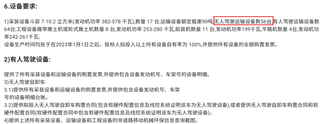 值得一提的是,本項(xiàng)目明確提出4個標(biāo)段累計(jì)需部署無人駕駛設(shè)備不低于240臺的要求。