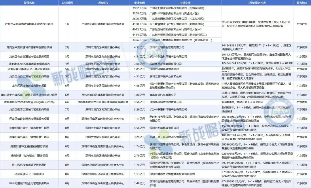 廣東省2025年無(wú)人環(huán)衛(wèi)領(lǐng)域億元級(jí)中標(biāo)項(xiàng)目
