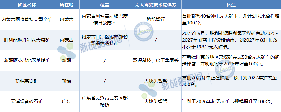 即將實現(xiàn)單礦百臺級無人礦車部署礦區(qū)匯總