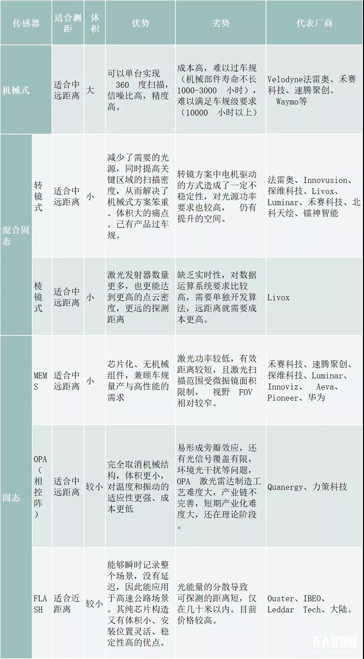 不同類型激光雷達(dá)優(yōu)劣勢(shì)對(duì)比